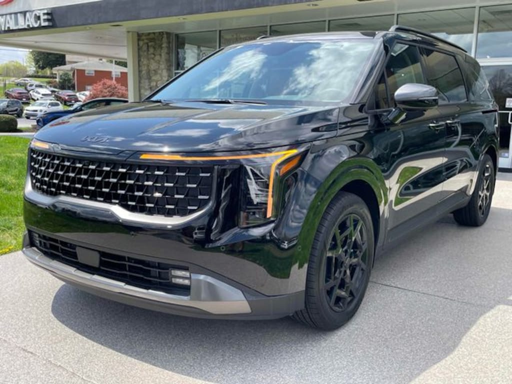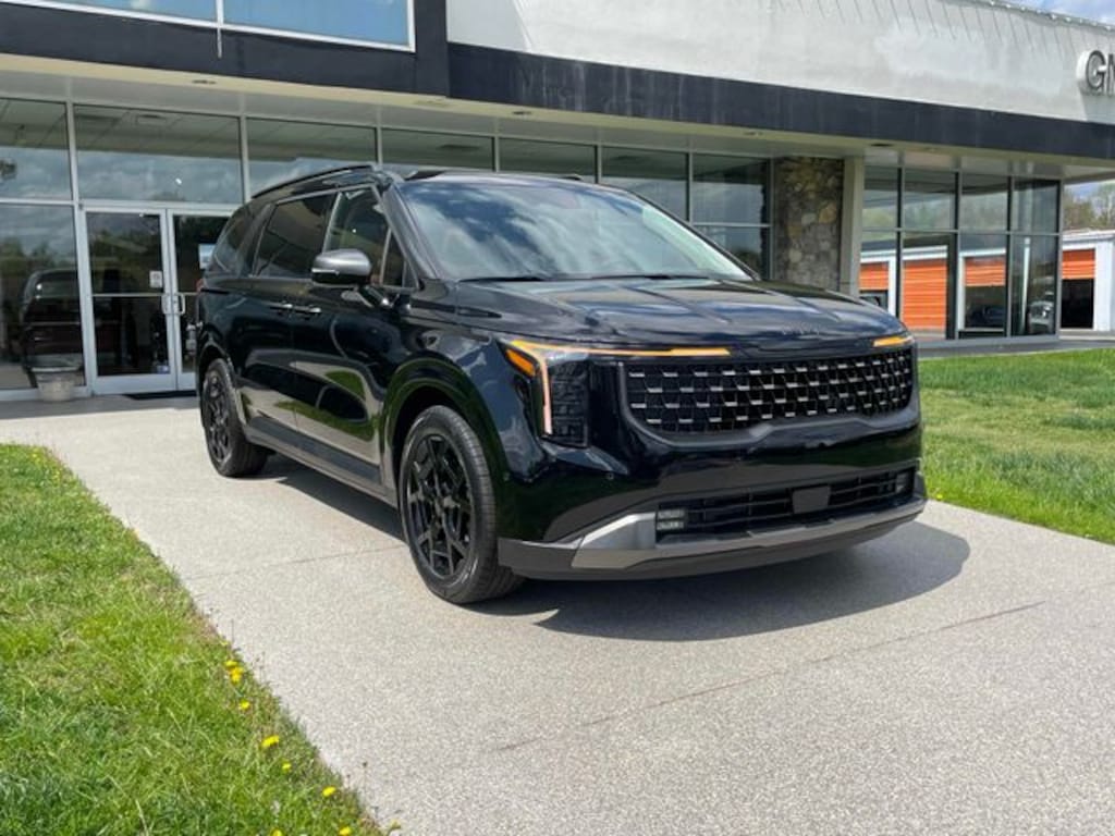 Check out all these great options 12 Speakers, 3rd row seats: split-bench, 4-Wheel Disc Brakes, Auto High-beam Headlights, Auto-dimming Rear-View mirror, Automatic temperature control, Brake assist, Bumpers: body-color, Driver door bin, Dual front impact airbags, Emergency communication system, Exterior Parking Camera Rear, Four wheel independent suspension, Front Center Armrest, Front dual zone A/C, Front fog lights, Front reading lights, Fully automatic headlights, Garage door transmitter: HomeLink, Heated & Ventilated Front Bucket Seats, Illuminated entry, Knee airbag, Leather steering wheel, Memory seat, Occupant sensing airbag, Passenger vanity mirror, Power 2nd-Row Moonroof, Power door mirrors, Power driver seat, Power Liftgate, Power moonroof, Power passenger seat, Power windows, Radio: AVN 5.0 Navigation System w/SiriusXM, Rear air conditioning, Rear anti-roll bar, Rear window wiper, Remote keyless entry, Speed-sensing steering, Steering wheel mounted audio controls, Tachometer, Telescoping steering wheel, Trip computer, Variably intermittent wipers, Wheels: 7.5J x 19" Alloy Dark Edition, ABS brakes, Air Conditioning, Alloy wheels, AM/FM radio: SiriusXM, Apple CarPlay & Android Auto, Compass, Delay-off headlights, Driver vanity mirror, Dual front side impact airbags, Electronic Stability Control, Front anti-roll bar, Front Bucket Seats, Heads-Up Display, Heated door mirrors, Heated front seats, Heated steering wheel, Leather Seat Trim, Leather Shift Knob, Low tire pressure warning, Navigation system: AVN 5.0 Navigation System, Outside temperature display, Overhead airbag, Overhead console, Panic alarm, Passenger door bin, Power steering, Rain sensing wipers, Rear reading lights, Rear window defroster, Reclining 3rd row seat, Security system, Speed control, Split folding rear seat, Spoiler, Tilt steering wheel, Traction control, Turn signal indicator mirrors, and Ventilated front seats. Aurora Black Pearl 2025 Kia Carnival Hybrid SX Prestige FWD 6-Speed Automatic 1.6L I4 DGI Hybrid Turbocharged DOHC 16V LEV3-SULEV30 12 Speakers, 3rd row seats: split-bench, 4-Wheel Disc Brakes, Auto High-beam Headlights, Auto-dimming Rear-View mirror, Automatic temperature control, Brake assist, Bumpers: body-color, Driver door bin, Dual front impact airbags, Emergency communication system, Exterior Parking Camera Rear, Four wheel independent suspension, Front Center Armrest, Front dual zone A/C, Front fog lights, Front reading lights, Fully automatic headlights, Garage door transmitter: HomeLink, Heated & Ventilated Front Bucket Seats, Illuminated entry, Knee airbag, Leather steering wheel, Memory seat, Occupant sensing airbag, Passenger vanity mirror, Power 2nd-Row Moonroof, Power door mirrors, Power driver seat, Power Liftgate, Power moonroof, Power passenger seat, Power windows, Radio: AVN 5.0 Navigation System w/SiriusXM, Rear air conditioning, Rear anti-roll bar, Rear window wiper, Remote keyless entry, Speed-sensing steering, Steering wheel mounted audio controls, Tachometer, Telescoping steering wheel, Trip computer, Variably intermittent wipers, Wheels: 7.5J x 19" Alloy Dark Edition.