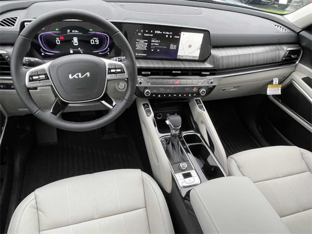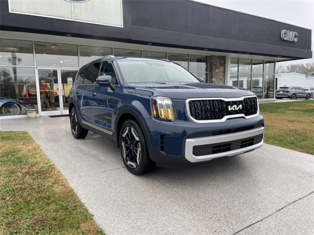 Check out all these great options 3rd row seats: split-bench, 4-Wheel Disc Brakes, 6 Speakers, ABS brakes, Air Conditioning, All Weather Floor Mats, Alloy wheels, AM/FM radio: SiriusXM, Apple CarPlay & Android Auto, Auto High-beam Headlights, Auto-dimming Rear-View mirror, Automatic temperature control, Brake assist, Bumpers: body-color, Compass, Delay-off headlights, Driver door bin, Driver vanity mirror, Dual front impact airbags, Dual front side impact airbags, Electronic Stability Control, Emergency communication system: 911 Connect, Exterior Parking Camera Rear, Four wheel independent suspension, Front anti-roll bar, Front Bucket Seats, Front Center Armrest, Front dual zone A/C, Front reading lights, Fully automatic headlights, Heated & Ventilated Front Bucket Seats, Heated door mirrors, Heated front seats, Illuminated entry, Knee airbag, Leather Seat Trim, Leather Shift Knob, Leather steering wheel, Low tire pressure warning, Navigation System, Occupant sensing airbag, Outside temperature display, Overhead airbag, Overhead console, Panic alarm, Passenger door bin, Passenger vanity mirror, Power door mirrors, Power driver seat, Power Liftgate, Power moonroof, Power passenger seat, Power steering, Power windows, Radio data system, Radio: AM/FM Display Audio System, Rear air conditioning, Rear anti-roll bar, Rear audio controls, Rear reading lights, Rear seat center armrest, Rear side impact airbag, Rear window defroster, Rear window wiper, Reclining 3rd row seat, Remote keyless entry, Security system, Speed control, Speed-sensing steering, Split folding rear seat, Spoiler, Steering wheel mounted audio controls, Tachometer, Telescoping steering wheel, Tilt steering wheel, Traction control, Trip computer, Turn signal indicator mirrors, Variably intermittent wipers, Ventilated front seats, and Wheels: 20" x 7.5" Black Finish. Midnight Lake Blue 2025 Kia Telluride EX FWD 8-Speed Automatic 3.8L V6 DOHC