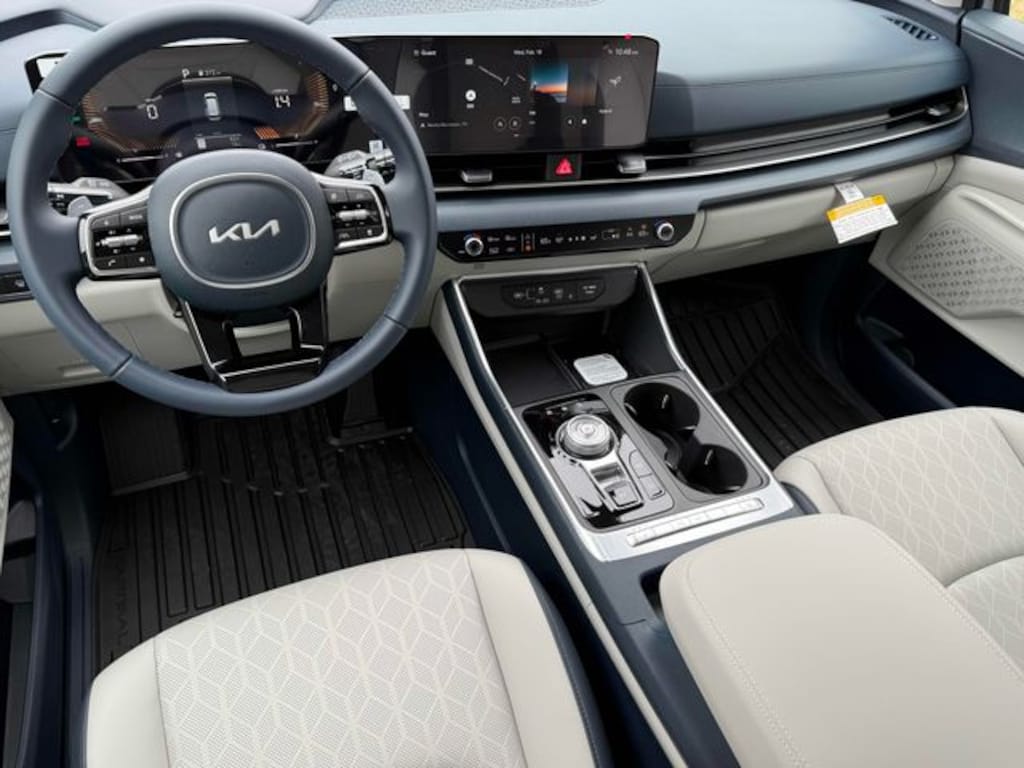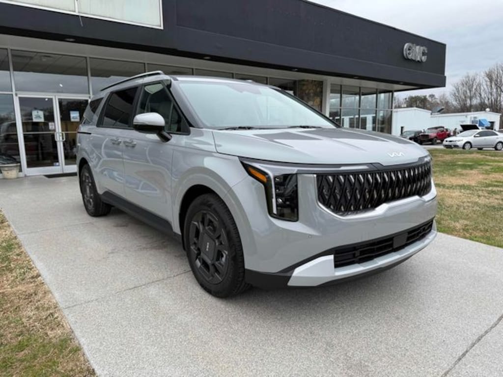 Check out all these great options 3rd row seats: split-bench, 4-Wheel Disc Brakes, 8 Speakers, ABS brakes, Air Conditioning, All Weather Floor Mats (8-Passenger), Alloy wheels, AM/FM radio: SiriusXM, Apple CarPlay & Android Auto, Artificial Leather Seat Trim, Auto High-beam Headlights, Automatic temperature control, Brake assist, Bumpers: body-color, Compass, Delay-off headlights, Driver door bin, Driver vanity mirror, Dual front impact airbags, Dual front side impact airbags, Electronic Stability Control, Emergency communication system, Exterior Parking Camera Rear, Four wheel independent suspension, Front anti-roll bar, Front Bucket Seats, Front Center Armrest, Front dual zone A/C, Front reading lights, Fully automatic headlights, Heated door mirrors, Heated Front Bucket Seats, Heated front seats, Illuminated entry, Knee airbag, Leather Shift Knob, Leather steering wheel, Low tire pressure warning, Memory seat, Navigation System, Occupant sensing airbag, Outside temperature display, Overhead airbag, Overhead console, Panic alarm, Passenger door bin, Passenger vanity mirror, Power door mirrors, Power driver seat, Power Liftgate, Power passenger seat, Power steering, Power windows, Radio: : Navigation System with SiriusXM, Rear air conditioning, Rear anti-roll bar, Rear reading lights, Rear window defroster, Rear window wiper, Reclining 3rd row seat, Remote keyless entry, Security system, Speed control, Speed-sensing steering, Split folding rear seat, Spoiler, Steering wheel mounted audio controls, Tachometer, Telescoping steering wheel, Tilt steering wheel, Traction control, Trip computer, Turn signal indicator mirrors, Variably intermittent wipers, and Wheels: 19" Black Alloy. Ceramic Silver 2026 Kia Carnival Hybrid EX FWD 6-Speed Automatic 1.6L I4 DGI Hybrid Turbocharged DOHC 16V LEV3-SULEV30
