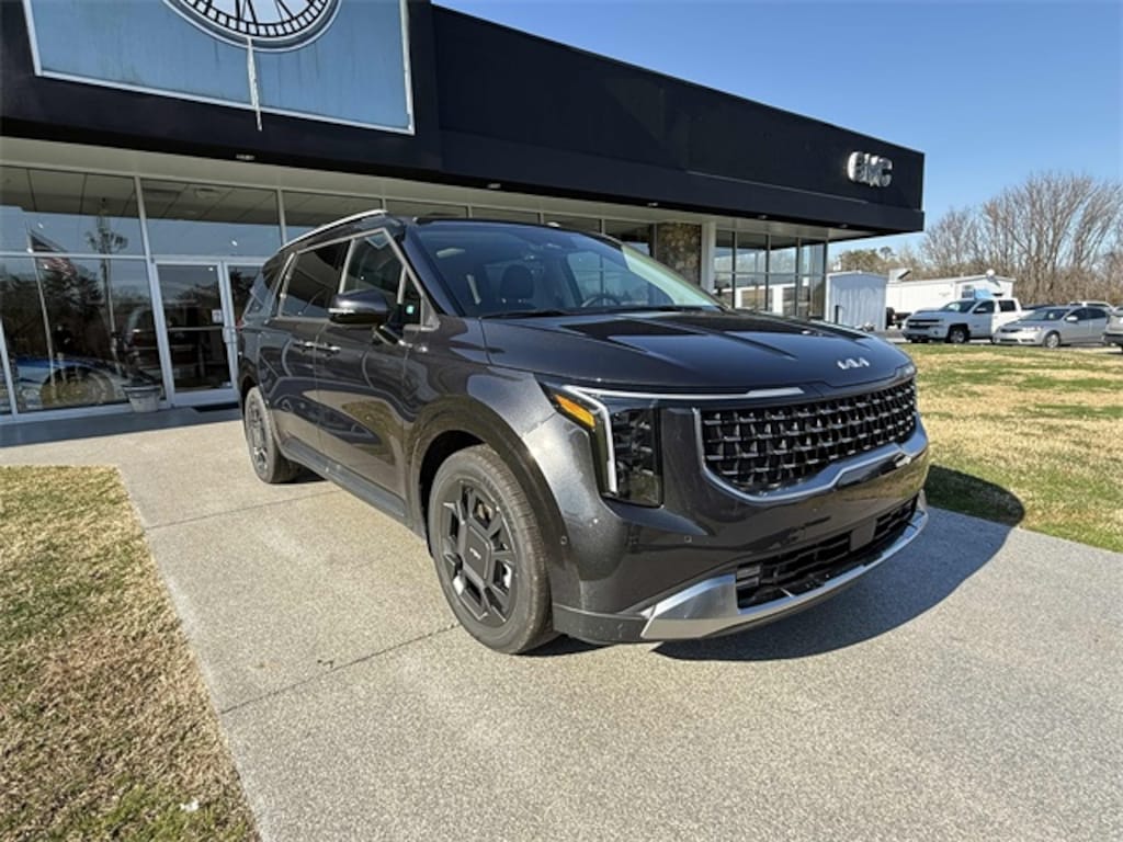 Check out all these great options 3rd row seats: split-bench, 4-Wheel Disc Brakes, ABS brakes, Air Conditioning, All Weather Floor Mats (8-Passenger), Alloy wheels, AM/FM radio: SiriusXM, Apple CarPlay & Android Auto, Auto High-beam Headlights, Automatic temperature control, Brake assist, Bumpers: body-color, Compass, Delay-off headlights, Driver door bin, Driver vanity mirror, Dual front impact airbags, Dual front side impact airbags, Electronic Stability Control, Emergency communication system, Exterior Parking Camera Rear, Four wheel independent suspension, Front anti-roll bar, Front Bucket Seats, Front Center Armrest, Front dual zone A/C, Front fog lights, Front reading lights, Fully automatic headlights, Heated and Ventilated Front Bucket Seats, Heated door mirrors, Heated front seats, Illuminated entry, Knee airbag, Leather Shift Knob, Leather steering wheel, Low tire pressure warning, Memory seat, Navigation System, Occupant sensing airbag, Outside temperature display, Overhead airbag, Overhead console, Panic alarm, Passenger door bin, Passenger vanity mirror, Power 2nd-Row Moonroof, Power door mirrors, Power driver seat, Power Liftgate, Power moonroof, Power passenger seat, Power steering, Power windows, Radio: : Navigation System with SiriusXM, Rain sensing wipers, Rear air conditioning, Rear anti-roll bar, Rear reading lights, Rear window defroster, Rear window wiper, Reclining 3rd row seat, Remote keyless entry, Security system, Speed control, Speed-sensing steering, Split folding rear seat, Spoiler, Steering wheel mounted audio controls, Tachometer, Telescoping steering wheel, Tilt steering wheel, Traction control, Trip computer, Turn signal indicator mirrors, Variably intermittent wipers, Ventilated front seats, and Wheels: 19" Black D-Cut Customizing. Panthera Metal 2026 Kia Carnival Hybrid SX FWD 6-Speed Automatic 1.6L I4 DGI Hybrid Turbocharged DOHC 16V LEV3-SULEV30