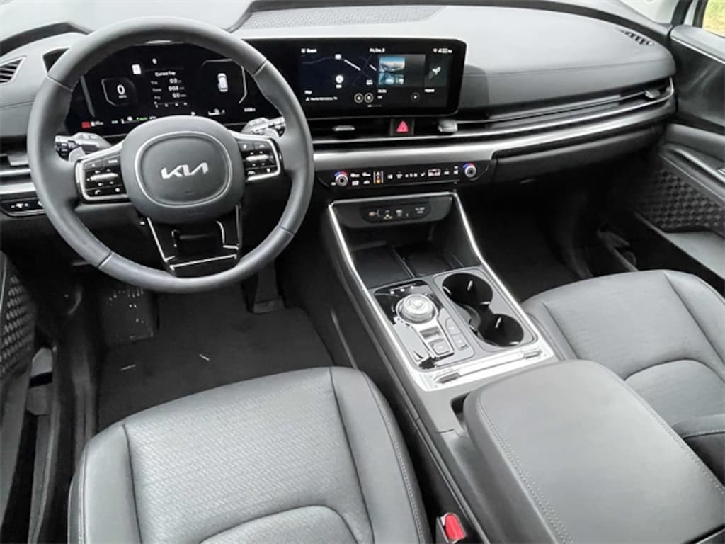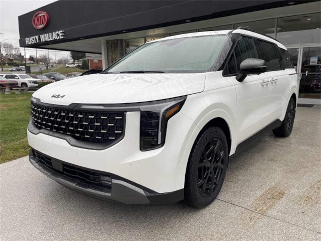 Check out all these great options 12 Speakers, 3rd row seats: split-bench, 4-Wheel Disc Brakes, ABS brakes, Air Conditioning, Alloy wheels, AM/FM radio: SiriusXM, Apple CarPlay & Android Auto, Auto High-beam Headlights, Auto-dimming Rear-View mirror, Automatic temperature control, Brake assist, Bumpers: body-color, Carpeted Floor Mats (8-Passenger), Compass, Delay-off headlights, Driver door bin, Driver vanity mirror, Dual front impact airbags, Dual front side impact airbags, Electronic Stability Control, Emergency communication system, Exterior Parking Camera Rear, Four wheel independent suspension, Front anti-roll bar, Front Bucket Seats, Front Center Armrest, Front dual zone A/C, Front fog lights, Front reading lights, Fully automatic headlights, Garage door transmitter: HomeLink, Heads-Up Display, Heated & Ventilated Front Bucket Seats, Heated door mirrors, Heated front seats, Heated steering wheel, Illuminated entry, Knee airbag, Leather Seat Trim, Leather Shift Knob, Leather steering wheel, Low tire pressure warning, Memory seat, Navigation System, Occupant sensing airbag, Outside temperature display, Overhead airbag, Overhead console, Panic alarm, Passenger door bin, Passenger vanity mirror, Power 2nd-Row Moonroof, Power door mirrors, Power driver seat, Power Liftgate, Power moonroof, Power passenger seat, Power steering, Power windows, Radio: Navigation System w/SiriusXM, Rain sensing wipers, Rear air conditioning, Rear anti-roll bar, Rear reading lights, Rear window defroster, Rear window wiper, Reclining 3rd row seat, Remote keyless entry, Security system, Speed control, Speed-sensing steering, Split folding rear seat, Spoiler, Steering wheel mounted audio controls, Tachometer, Telescoping steering wheel, Tilt steering wheel, Traction control, Trip computer, Turn signal indicator mirrors, Variably intermittent wipers, Ventilated front seats, and Wheels: 19" Black D-Cut Customizing. Snow White Pearl 2026 Kia Carnival Hybrid SX Prestige FWD 6-Speed Automatic 1.6L I4 DGI Hybrid Turbocharged DOHC 16V LEV3-SULEV30