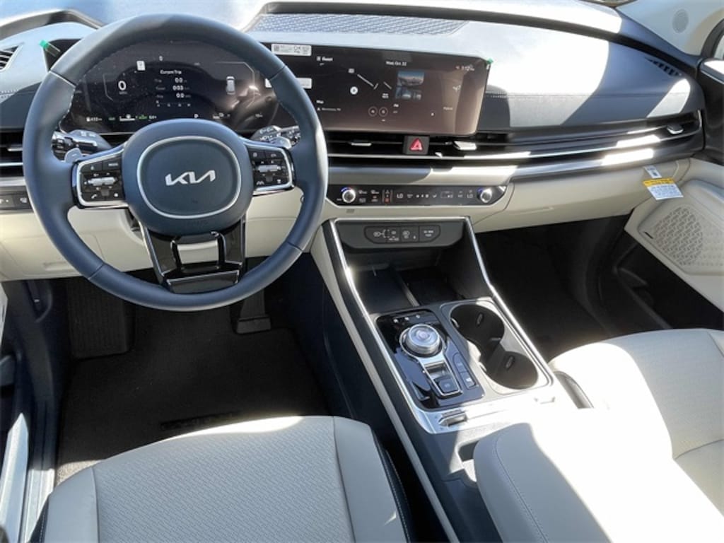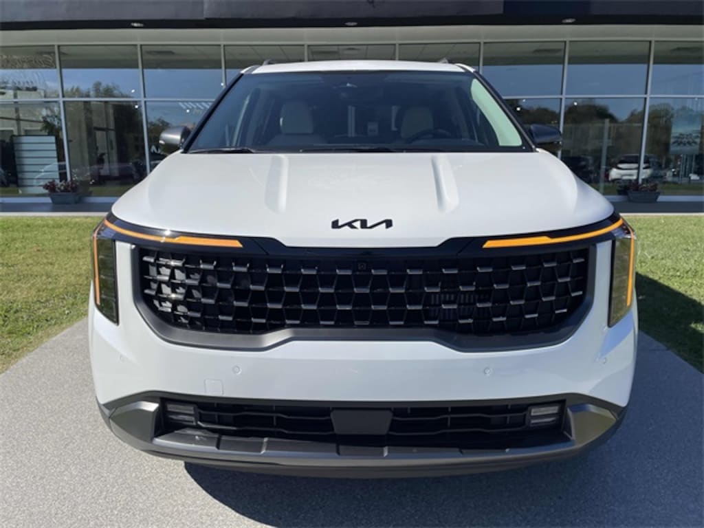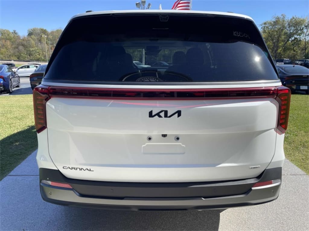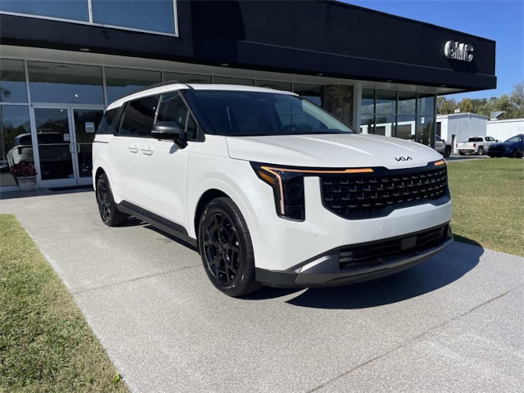 Check out all these great options 12 Speakers, 3rd row seats: split-bench, 4-Wheel Disc Brakes, ABS brakes, Air Conditioning, Alloy wheels, AM/FM radio: SiriusXM, Apple CarPlay & Android Auto, Auto High-beam Headlights, Auto-dimming Rear-View mirror, Automatic temperature control, Brake assist, Bumpers: body-color, Carpeted Floor Mats (8-Passenger), Compass, Delay-off headlights, Driver door bin, Driver vanity mirror, Dual front impact airbags, Dual front side impact airbags, Electronic Stability Control, Emergency communication system, Exterior Parking Camera Rear, Four wheel independent suspension, Front anti-roll bar, Front Bucket Seats, Front Center Armrest, Front dual zone A/C, Front fog lights, Front reading lights, Fully automatic headlights, Garage door transmitter: HomeLink, Heads-Up Display, Heated & Ventilated Front Bucket Seats, Heated door mirrors, Heated front seats, Heated steering wheel, Illuminated entry, Knee airbag, Leather Seat Trim, Leather Shift Knob, Leather steering wheel, Low tire pressure warning, Memory seat, Navigation System, Occupant sensing airbag, Outside temperature display, Overhead airbag, Overhead console, Panic alarm, Passenger door bin, Passenger vanity mirror, Power 2nd-Row Moonroof, Power door mirrors, Power driver seat, Power Liftgate, Power moonroof, Power passenger seat, Power steering, Power windows, Radio: Navigation System w/SiriusXM, Rain sensing wipers, Rear air conditioning, Rear anti-roll bar, Rear reading lights, Rear window defroster, Rear window wiper, Reclining 3rd row seat, Remote keyless entry, Security system, Speed control, Speed-sensing steering, Split folding rear seat, Spoiler, Steering wheel mounted audio controls, Tachometer, Telescoping steering wheel, Tilt steering wheel, Traction control, Trip computer, Turn signal indicator mirrors, Variably intermittent wipers, Ventilated front seats, and Wheels: 19" Black D-Cut Customizing. Snow White Pearl 2026 Kia Carnival Hybrid SX Prestige FWD 6-Speed Automatic 1.6L I4 DGI Hybrid Turbocharged DOHC 16V LEV3-SULEV30
