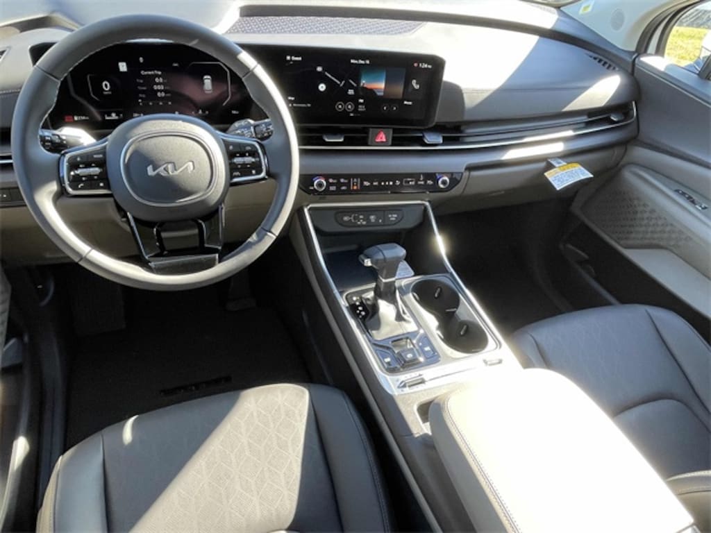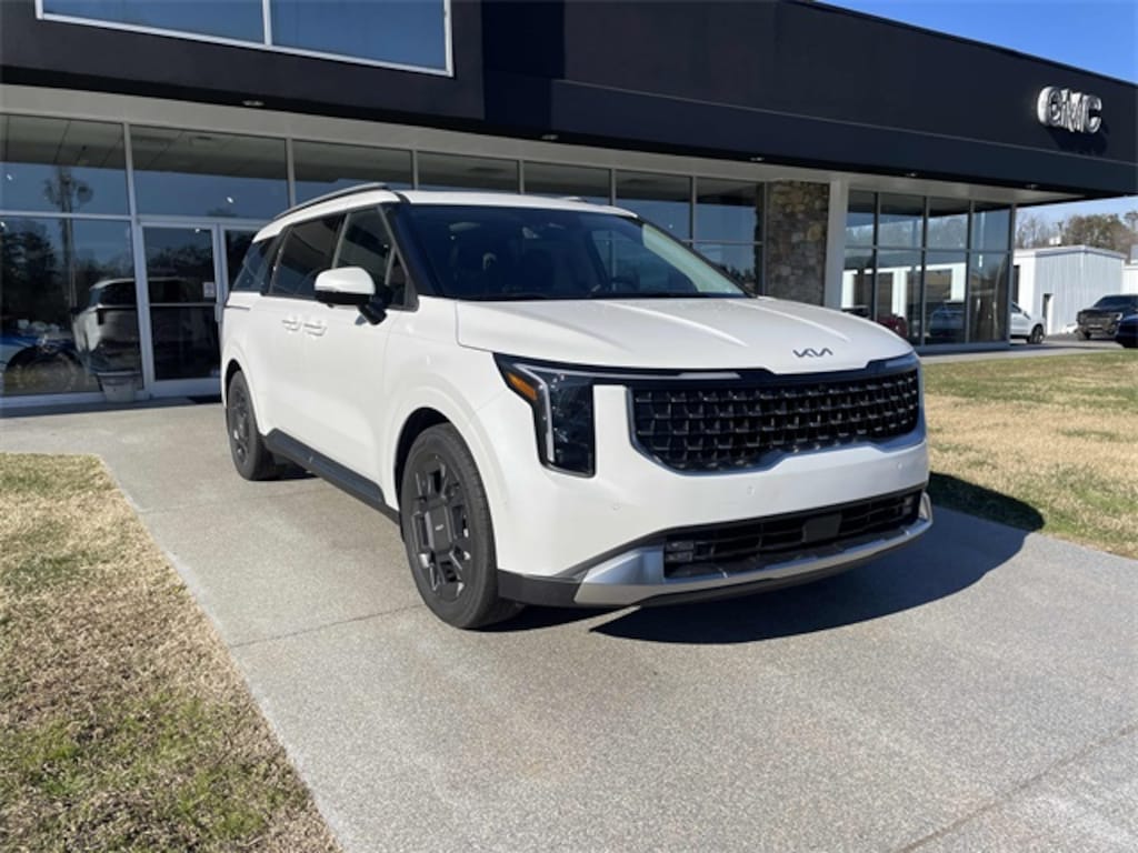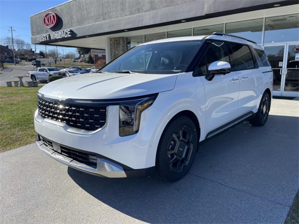 Check out all these great options 3.51 Axle Ratio, 3rd row seats: split-bench, 4-Wheel Disc Brakes, 8 Speakers, ABS brakes, Air Conditioning, Alloy wheels, AM/FM radio: SiriusXM, Apple CarPlay & Android Auto, Artificial Leather Seat Trim, Auto High-beam Headlights, Auto-Dimming Mirror w/HomeLink, Automatic temperature control, Brake assist, Bumpers: body-color, Carpeted Floor Mats (8-Passenger), Compass, Delay-off headlights, Driver door bin, Driver vanity mirror, Dual front impact airbags, Dual front side impact airbags, Electronic Stability Control, Emergency communication system, Exterior Parking Camera Rear, Four wheel independent suspension, Front anti-roll bar, Front Bucket Seats, Front Center Armrest, Front dual zone A/C, Front fog lights, Front reading lights, Fully automatic headlights, Heated & Ventilated Front Bucket Seats, Heated door mirrors, Heated front seats, Illuminated entry, Knee airbag, Leather Shift Knob, Leather steering wheel, Low tire pressure warning, Memory seat, Navigation System, Occupant sensing airbag, Outside temperature display, Overhead airbag, Overhead console, Panic alarm, Passenger door bin, Passenger vanity mirror, Power 2nd-Row Moonroof, Power door mirrors, Power driver seat, Power Liftgate, Power moonroof, Power passenger seat, Power steering, Power windows, Radio: AM/FM/HD Audio System, Rain sensing wipers, Rear air conditioning, Rear anti-roll bar, Rear reading lights, Rear window defroster, Rear window wiper, Reclining 3rd row seat, Remote keyless entry, Security system, Speed control, Speed-sensing steering, Split folding rear seat, Spoiler, Steering wheel mounted audio controls, Tachometer, Telescoping steering wheel, Tilt steering wheel, Traction control, Trip computer, Turn signal indicator mirrors, Variably intermittent wipers, Ventilated front seats, Wheels: 7.5J x 19" Alloy Dark Edition, and Wheels: 7.5J x 19" Black Alloy. Snow White Pearl 2026 Kia Carnival SX FWD 8-Speed Automatic V6