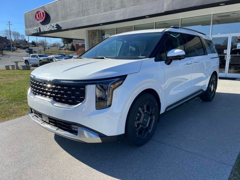 Check out all these great options 3.51 Axle Ratio, 3rd row seats: split-bench, 4-Wheel Disc Brakes, ABS brakes, Air Conditioning, Alloy wheels, AM/FM radio: SiriusXM, Apple CarPlay & Android Auto, Auto High-beam Headlights, Automatic temperature control, Brake assist, Bumpers: body-color, Carpeted Floor Mats (8-Passenger), Compass, Delay-off headlights, Driver door bin, Driver vanity mirror, Dual front impact airbags, Dual front side impact airbags, Electronic Stability Control, Emergency communication system, Exterior Parking Camera Rear, Four wheel independent suspension, Front anti-roll bar, Front Bucket Seats, Front Center Armrest, Front dual zone A/C, Front fog lights, Front reading lights, Fully automatic headlights, Heated and Ventilated Front Bucket Seats, Heated door mirrors, Heated front seats, Illuminated entry, Knee airbag, Leather Shift Knob, Leather steering wheel, Low tire pressure warning, Memory seat, Navigation System, Occupant sensing airbag, Outside temperature display, Overhead airbag, Overhead console, Panic alarm, Passenger door bin, Passenger vanity mirror, Power 2nd-Row Moonroof, Power door mirrors, Power driver seat, Power Liftgate, Power moonroof, Power passenger seat, Power steering, Power windows, Radio: AM/FM/HD Audio System, Rain sensing wipers, Rear air conditioning, Rear anti-roll bar, Rear reading lights, Rear window defroster, Rear window wiper, Reclining 3rd row seat, Remote keyless entry, Security system, Speed control, Speed-sensing steering, Split folding rear seat, Spoiler, Steering wheel mounted audio controls, Tachometer, Telescoping steering wheel, Tilt steering wheel, Traction control, Trip computer, Turn signal indicator mirrors, Variably intermittent wipers, Ventilated front seats, and Wheels: 7.5J x 19" Alloy Dark Edition. Snow White Pearl 2026 Kia Carnival SX FWD 8-Speed Automatic V6