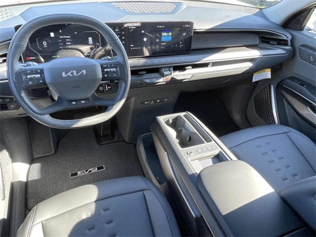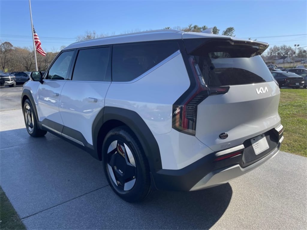 Check out all these great options 3rd row seats: split-bench, 4-Wheel Disc Brakes, 8 Speakers, ABS brakes, Air Conditioning, Alloy wheels, AM/FM radio, Apple CarPlay & Android Auto, Auto High-beam Headlights, Auto-dimming Rear-View mirror, Automatic temperature control, Brake assist, Bumpers: body-color, Cargo Cover, Carpet Cargo Mat w/Seatback Protection, Carpeted Floor Mat, 7-Passenger, Delay-off headlights, Driver door bin, Driver vanity mirror, Dual front impact airbags, Dual front side impact airbags, Electronic Stability Control, Emergency communication system: 911 Connect, Exterior Parking Camera Rear, Four wheel independent suspension, Front anti-roll bar, Front Bucket Seats, Front Center Armrest w/Storage, Front dual zone A/C, Front reading lights, Full SynTex Leather Seat Trim, Fully automatic headlights, Garage door transmitter: HomeLink, Heated & Ventilated Front Bucket Seats, Heated door mirrors, Heated front seats, Heated steering wheel, Illuminated entry, Knee airbag, Low tire pressure warning, Memory seat, Mud Guards, Navigation System, Occupant sensing airbag, Outside temperature display, Overhead airbag, Overhead console, Panic alarm, Passenger door bin, Passenger vanity mirror, Power door mirrors, Power driver seat, Power Liftgate, Power moonroof, Power passenger seat, Power steering, Power windows, Radio data system, Radio: AM/FM/HD Radio/SiriusXM, Rain sensing wipers, Rear air conditioning, Rear anti-roll bar, Rear reading lights, Rear seat center armrest, Rear window defroster, Rear window wiper, Reclining 3rd row seat, Remote keyless entry, Security system, Speed control, Speed-sensing steering, Split folding rear seat, Spoiler, Steering wheel memory, Steering wheel mounted audio controls, Telescoping steering wheel, Tilt steering wheel, Traction control, Trip computer, Turn signal indicator mirrors, Variably intermittent wipers, Ventilated front seats, and Wheels: 19" Black & Machined Finished Alloy. Glacial White Pearl 2026 Kia EV9 Wind AWD 1-Speed Automatic Electric Motor Price includes: $10000 - Kia Customer Cash. Exp. 01/02/2026