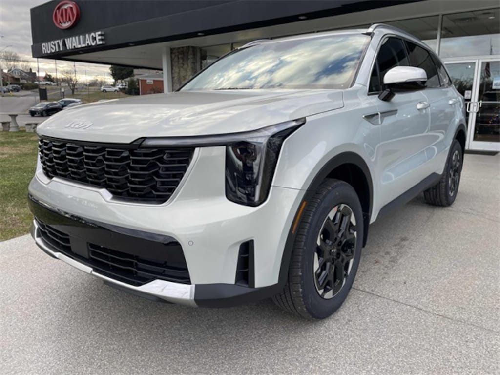 Check out all these great options 3rd row seats: split-bench, 4-Wheel Disc Brakes, 6 Speakers, ABS brakes, Air Conditioning, All Weather Floor Mats, Alloy wheels, AM/FM radio: SiriusXM, Apple CarPlay & Android Auto, Auto High-beam Headlights, Auto-Dimming Mirror with HomeLink, Automatic temperature control, Brake assist, Bumpers: body-color, Delay-off headlights, Driver door bin, Driver vanity mirror, Dual front impact airbags, Dual front side impact airbags, Electronic Stability Control, Emergency communication system: 911 Connect, Exterior Parking Camera Rear, Four wheel independent suspension, Front anti-roll bar, Front Bucket Seats, Front Center Armrest, Front dual zone A/C, Front reading lights, Fully automatic headlights, Heated door mirrors, Heated Front Bucket Seats, Heated front seats, Illuminated entry, Knee airbag, Leather Shift Knob, Leather steering wheel, Low tire pressure warning, Occupant sensing airbag, Outside temperature display, Overhead airbag, Overhead console, Panic alarm, Passenger door bin, Passenger vanity mirror, Power door mirrors, Power driver seat, Power steering, Power windows, Radio data system, Radio: AM/FM Standard Sound System, Rear anti-roll bar, Rear reading lights, Rear seat center armrest, Rear side impact airbag, Rear window defroster, Rear window wiper, Remote keyless entry, Security system, Speed control, Speed-sensing steering, Split folding rear seat, Spoiler, Steering wheel mounted audio controls, SynTex Artificial Leather Seat Trim, Tachometer, Telescoping steering wheel, Tilt steering wheel, Traction control, Trip computer, Turn signal indicator mirrors, Variably intermittent wipers, and Wheels: 18" Gloss Black Alloy. Ivory Silver 2026 Kia Sorento S AWD 8-Speed Automatic 2.5L I4 DGI DOHC 16V LEV3-SULEV30 191hp
