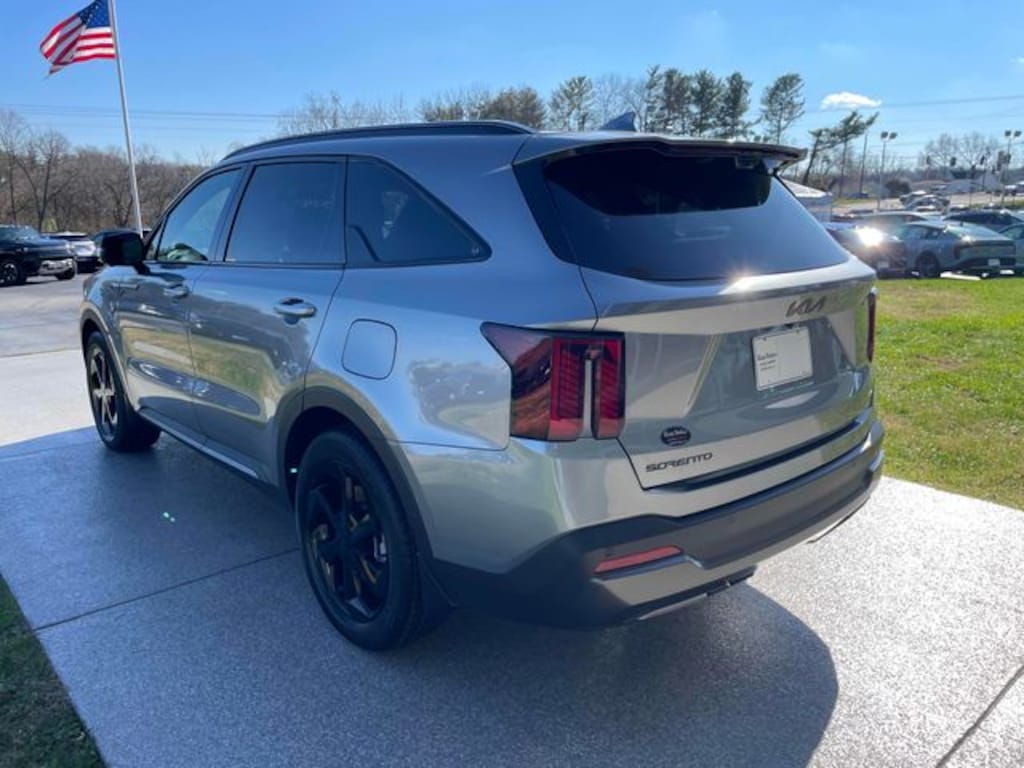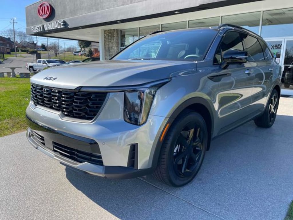 Check out all these great options 12 Speakers, 3rd row seats: split-bench, 4-Wheel Disc Brakes, ABS brakes, Air Conditioning, Alloy wheels, AM/FM radio: SiriusXM, Apple CarPlay & Android Auto, Auto High-beam Headlights, Auto-dimming Rear-View mirror, Automatic temperature control, Brake assist, Bumpers: body-color, Cargo Net, Cargo Tray, Carpeted Floor Mats, Delay-off headlights, Driver door bin, Driver vanity mirror, Dual front impact airbags, Dual front side impact airbags, Electronic Stability Control, Emergency communication system: 911 Connect, Exterior Parking Camera Rear, Four wheel independent suspension, Front anti-roll bar, Front Bucket Seats, Front Center Armrest, Front dual zone A/C, Front fog lights, Front reading lights, Fully automatic headlights, Garage door transmitter: HomeLink, Heated and Ventilated Front Bucket Seats, Heated door mirrors, Heated front seats, Heated rear seats, Heated steering wheel, Illuminated entry, Knee airbag, Leather steering wheel, Low tire pressure warning, Memory seat, Navigation System, Occupant sensing airbag, Outside temperature display, Overhead airbag, Overhead console, Panic alarm, Passenger door bin, Passenger vanity mirror, Perforated Genuine Leather Seat Trim, Power door mirrors, Power driver seat, Power Liftgate, Power moonroof, Power passenger seat, Power steering, Power windows, Radio data system, Radio: AM/FM/SiriusXM Audio System, Rain sensing wipers, Rear anti-roll bar, Rear reading lights, Rear side impact airbag, Rear window defroster, Rear window wiper, Remote keyless entry, Security system, Speed control, Speed-sensing steering, Split folding rear seat, Spoiler, Steering wheel mounted audio controls, Tachometer, Telescoping steering wheel, Tilt steering wheel, Traction control, Trip computer, Turn signal indicator mirrors, Variably intermittent wipers, Ventilated front seats, and Wheels: 19" x 7.5J Machine-Finished Aero-Alloy. Steel Gray 2026 Kia Sorento Hybrid X-Line SX Prestige AWD 6-Speed Automatic 1.6L Turbo GDI 4-Cylinder