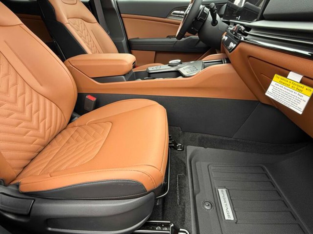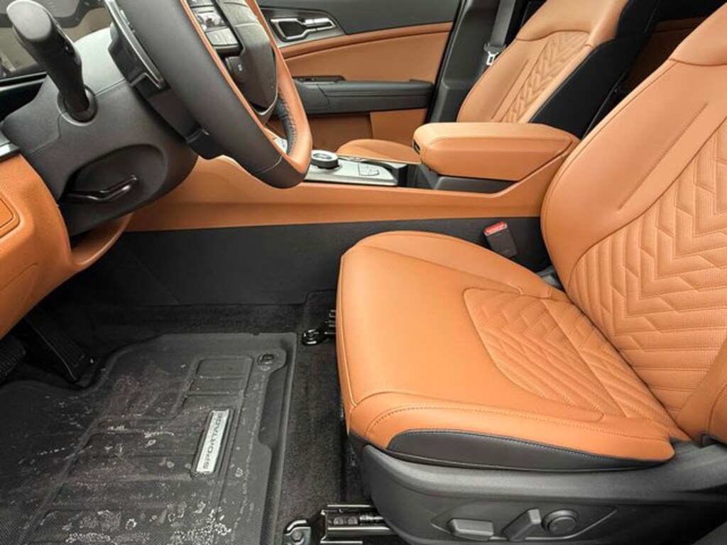 Check out all these great options 4-Wheel Disc Brakes, 6 Speakers, ABS brakes, Air Conditioning, All Weather Floor Mats, Alloy wheels, Auto High-beam Headlights, Auto-Dimming Mirror with HomeLink, Automatic temperature control, Brake assist, Bumpers: body-color, Delay-off headlights, Driver door bin, Driver vanity mirror, Dual front impact airbags, Dual front side impact airbags, Electronic Stability Control, Emergency communication system, Four wheel independent suspension, Front anti-roll bar, Front Bucket Seats, Front Center Armrest, Front dual zone A/C, Fully automatic headlights, Heated door mirrors, Heated Front Bucket Seats, Heated front seats, Illuminated entry, Leather steering wheel, Low tire pressure warning, Occupant sensing airbag, Outside temperature display, Overhead airbag, Overhead console, Panic alarm, Passenger door bin, Passenger vanity mirror, Power door mirrors, Power driver seat, Power Liftgate, Power steering, Power windows, Radio: AM/FM/HD Audio System, Rain sensing wipers, Rear anti-roll bar, Rear seat center armrest, Rear side impact airbag, Rear window defroster, Rear window wiper, Remote keyless entry, Security system, Speed control, Speed-sensing steering, Split folding rear seat, Spoiler, Steering wheel mounted audio controls, Tachometer, Telescoping steering wheel, Tilt steering wheel, Traction control, Trip computer, Turn signal indicator mirrors, and Variably intermittent wipers. Wolf Gray 2026 Kia Sportage Hybrid X-Line AWD 6-Speed Automatic 1.6L Turbo GDI 4-Cylinder