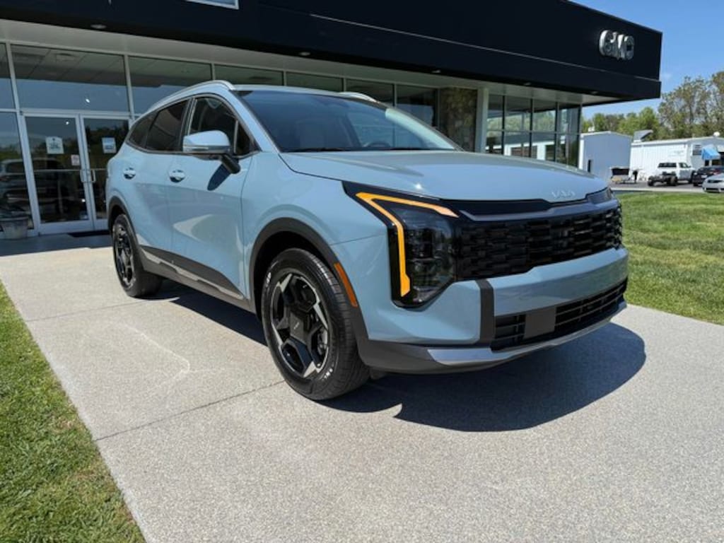 Check out all these great options 4-Wheel Disc Brakes, 6 Speakers, ABS brakes, Air Conditioning, All Weather Floor Mats, Alloy wheels, Auto High-beam Headlights, Auto-Dimming Mirror with HomeLink, Automatic temperature control, Brake assist, Bumpers: body-color, Delay-off headlights, Driver door bin, Driver vanity mirror, Dual front impact airbags, Dual front side impact airbags, Electronic Stability Control, Emergency communication system, Four wheel independent suspension, Front anti-roll bar, Front Bucket Seats, Front Center Armrest, Front dual zone A/C, Fully automatic headlights, Heated door mirrors, Heated Front Bucket Seats, Heated front seats, Illuminated entry, Leather steering wheel, Low tire pressure warning, Occupant sensing airbag, Outside temperature display, Overhead airbag, Overhead console, Panic alarm, Passenger door bin, Passenger vanity mirror, Power door mirrors, Power driver seat, Power Liftgate, Power steering, Power windows, Radio: AM/FM/HD Audio System, Rain sensing wipers, Rear anti-roll bar, Rear seat center armrest, Rear side impact airbag, Rear window defroster, Rear window wiper, Remote keyless entry, Security system, Speed control, Speed-sensing steering, Split folding rear seat, Spoiler, Steering wheel mounted audio controls, Tachometer, Telescoping steering wheel, Tilt steering wheel, Traction control, Trip computer, Turn signal indicator mirrors, and Variably intermittent wipers. Heritage Blue 2026 Kia Sportage Hybrid EX AWD 6-Speed Automatic 1.6L Turbo GDI 4-Cylinder